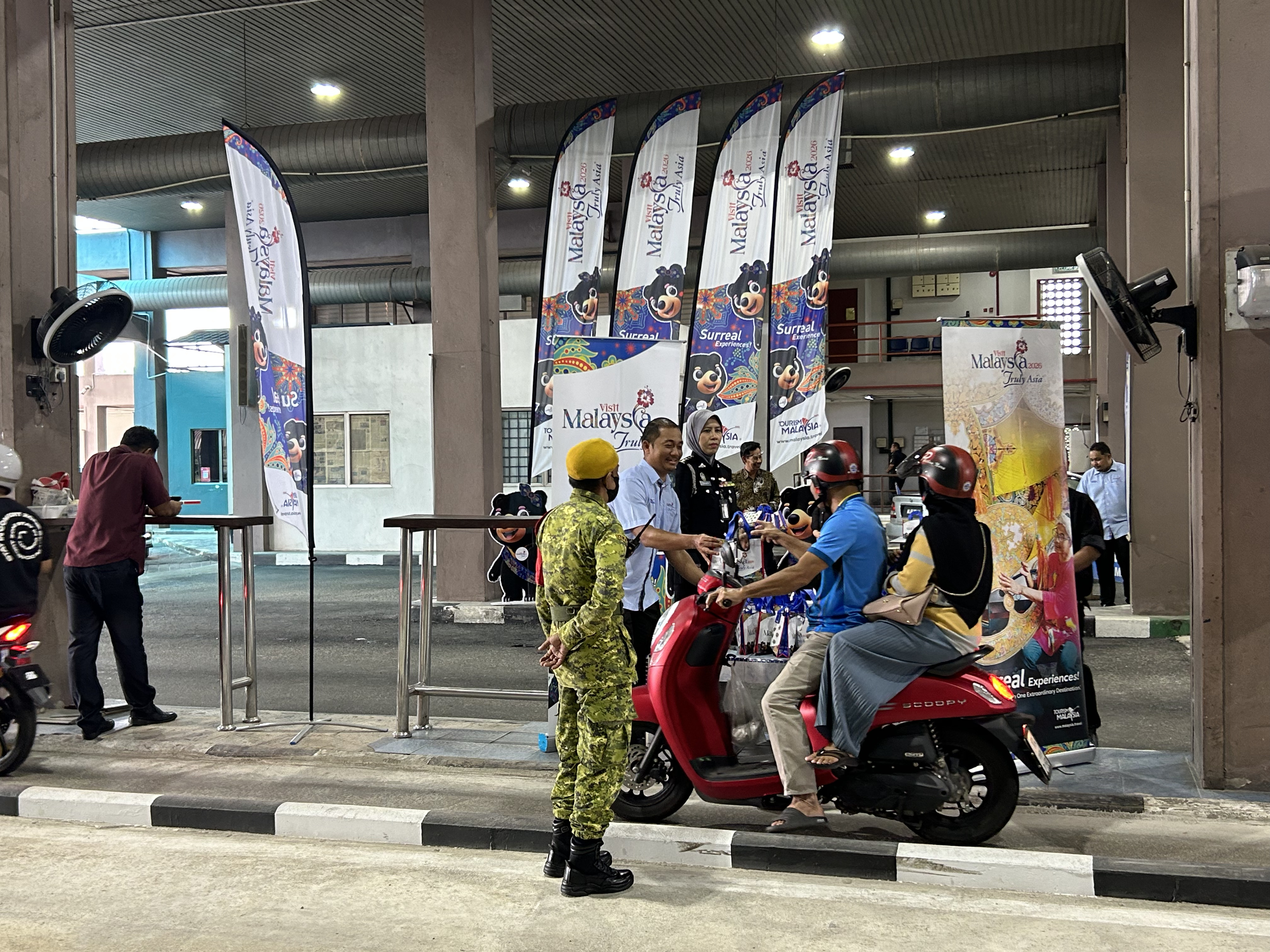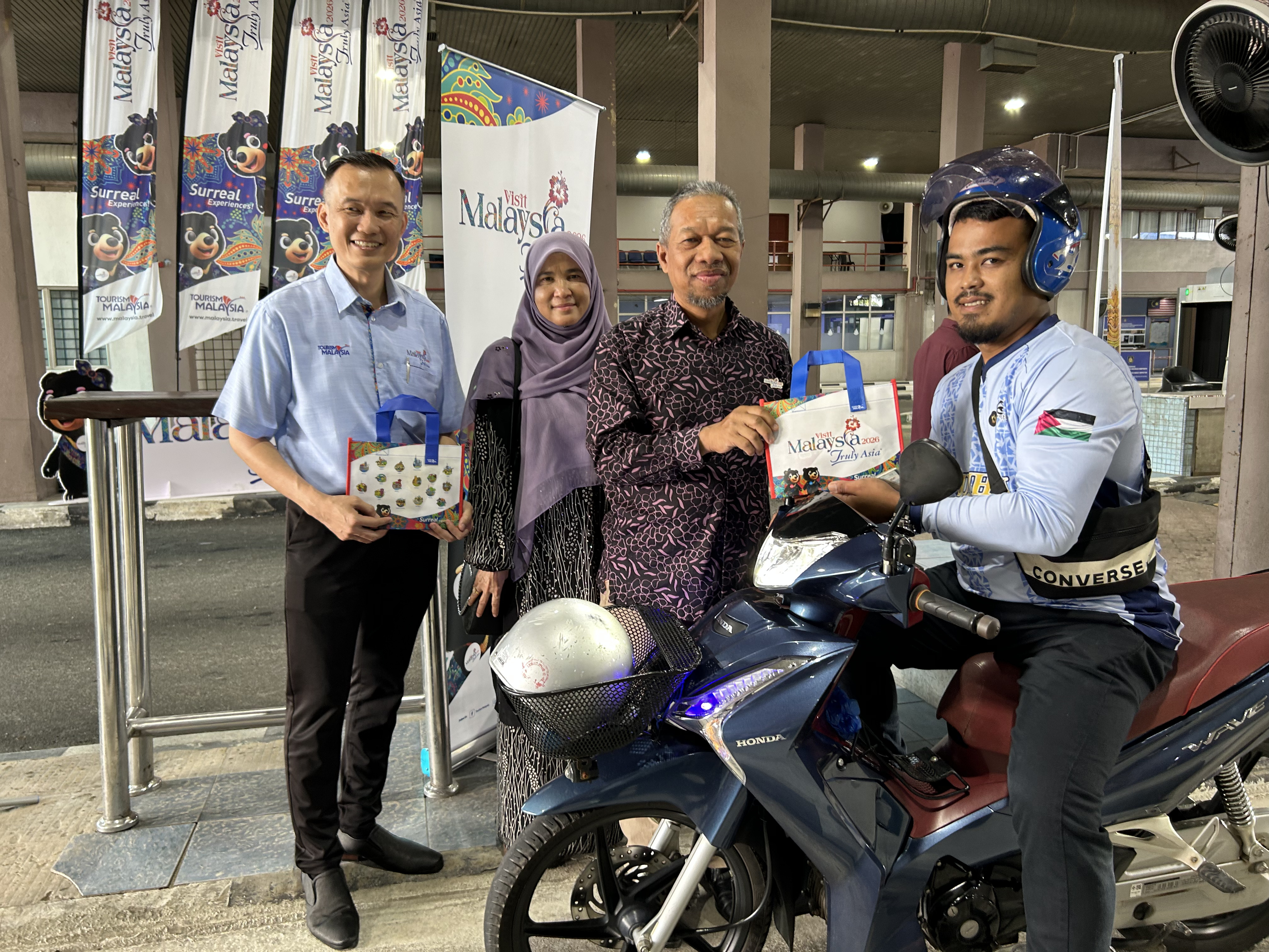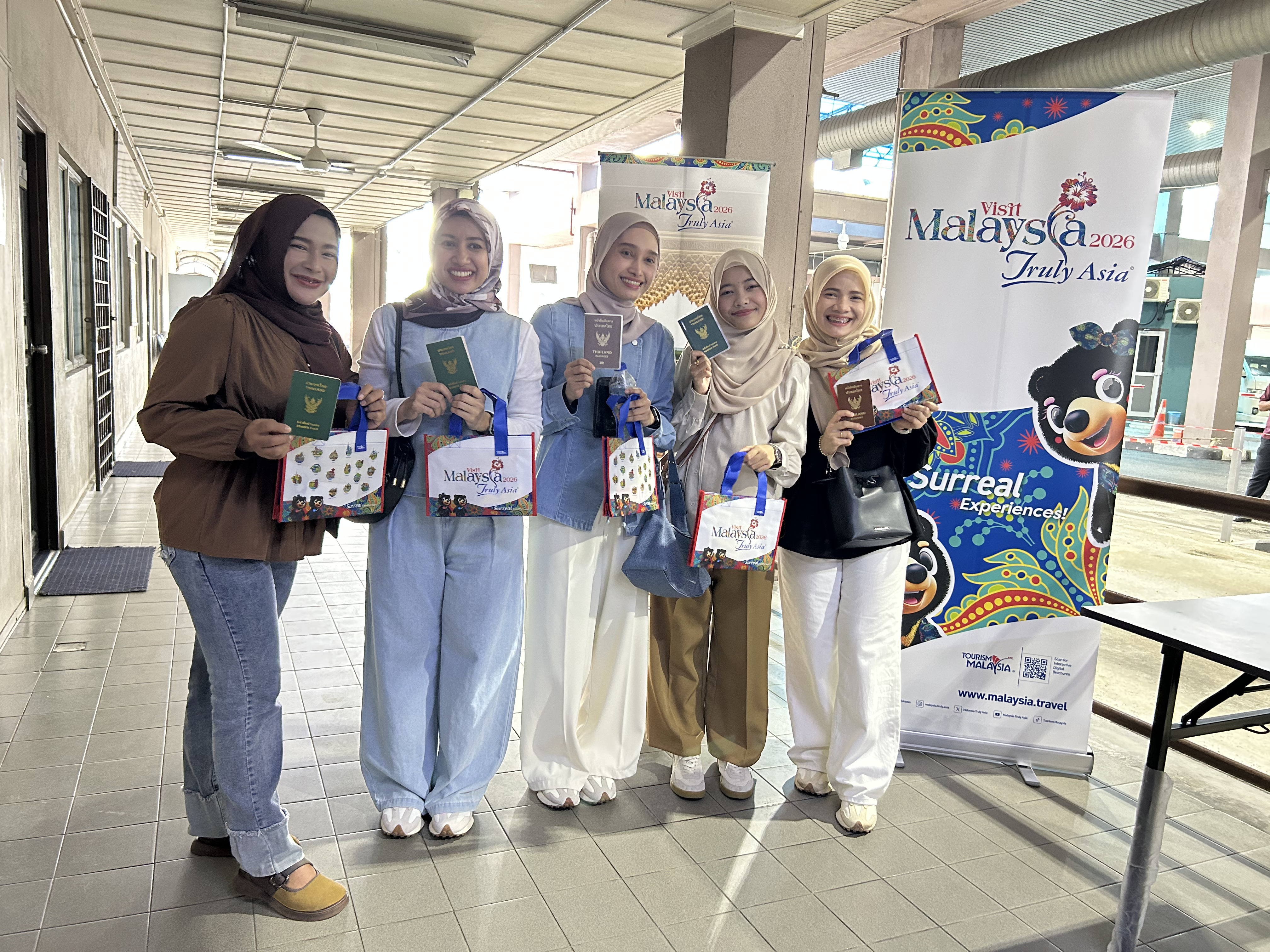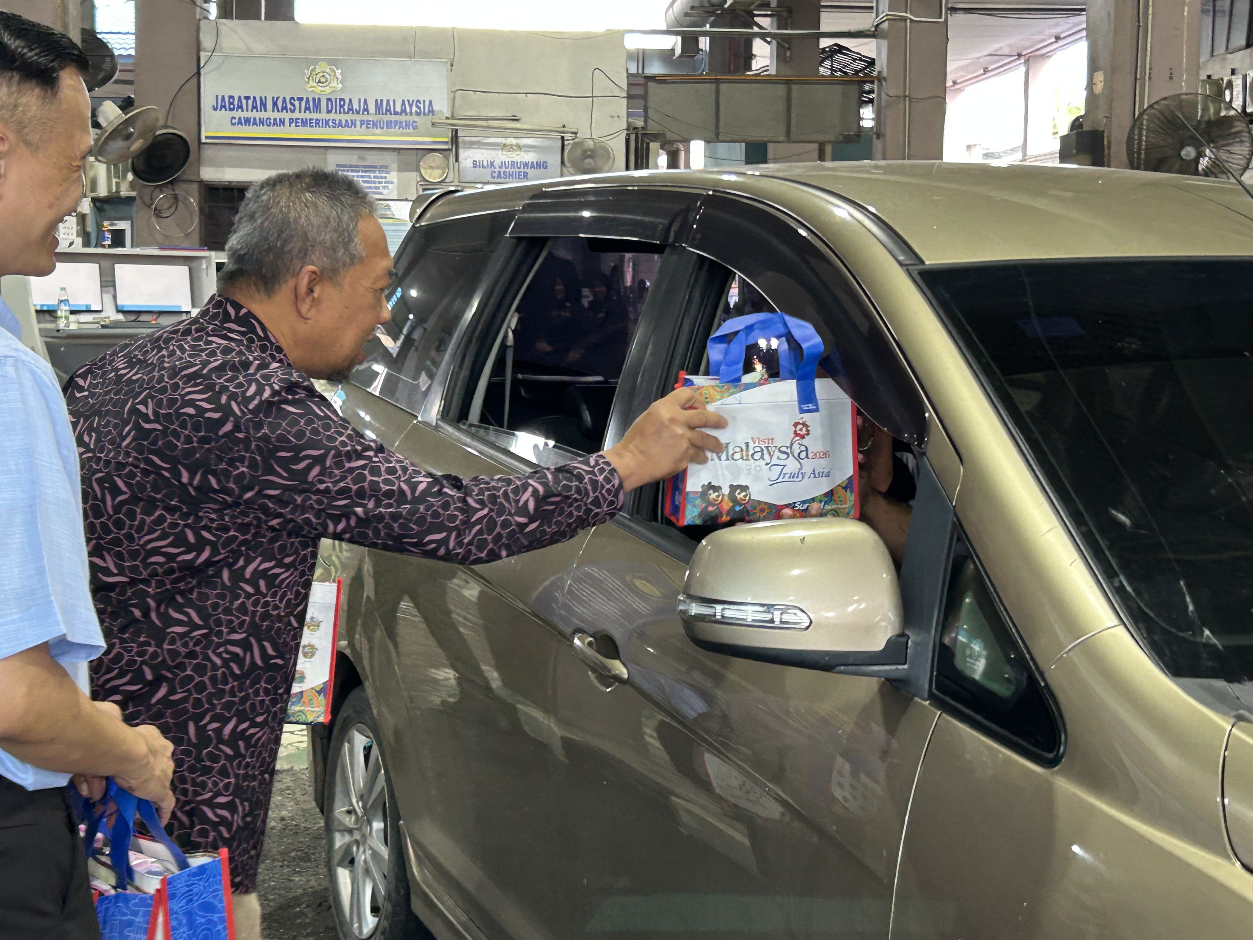 Selamat datang ke Malaysia! Suasana ceria mewarnai Sambutan Peluncuran Visit Malaysia 2026 (VM2026) di ICQS Rantau Panjang bagi mengalu-alukan ketibaan pelancong dari negara Thailand. Program ini telah disempurnakan oleh YB Zameri bin Mat Nawang, Timbalan Exco Pelancongan Negeri Kelantan dan turut hadir bersama YBrs Encik Chan Hon Mun, Timbalan Pengarah Kanan Bahagian Komunikasi Korporat Tourism Malaysia, wakil dari MOTAC Kelantan serta wakil dari Pusat Penerangan Pelancongan Negeri Kelantan. Ayuh terokai keindahan, budaya, makanan dan keramahan rakyat Malaysia bersempena Visit Malaysia 2026!